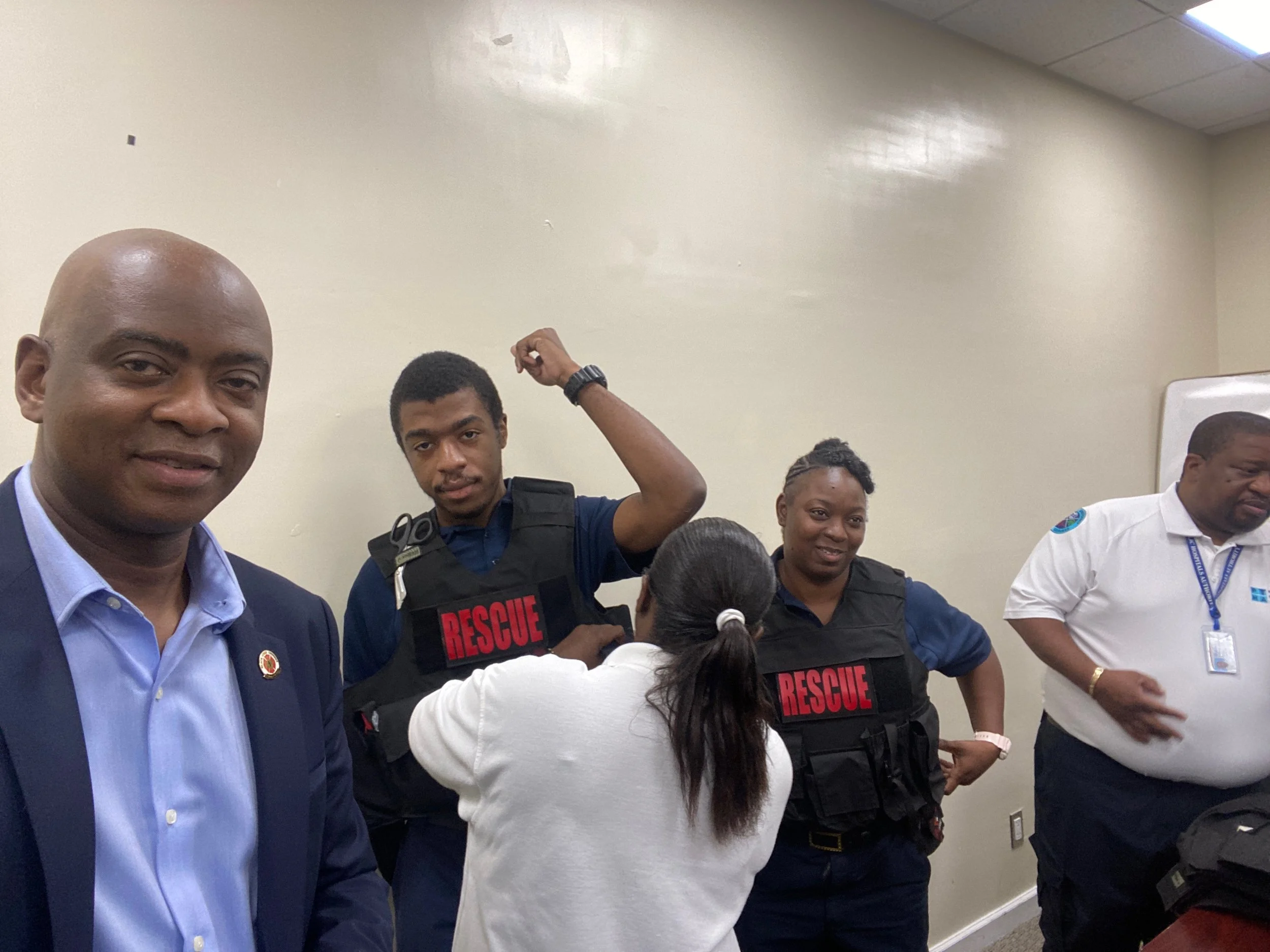 The Bahamas Emergency Medical Services personnel receive ballistic vests.